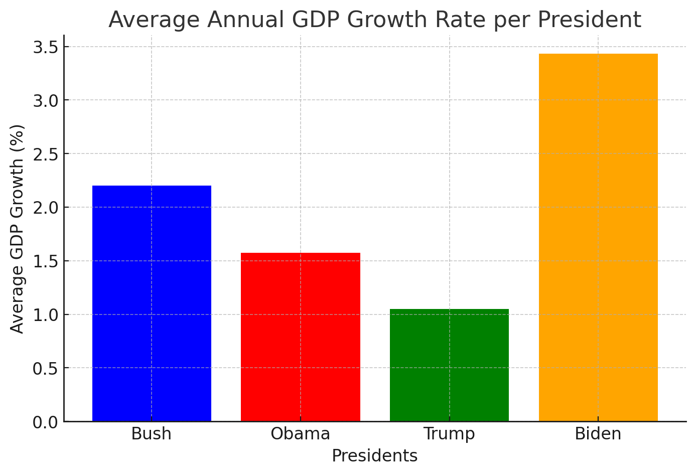 These averages capture the peaks and troughs of economic activity under each administration, reflecting recessions, recoveries, and unique challenges encountered along the way. However, GDP alone only tells part of the story.